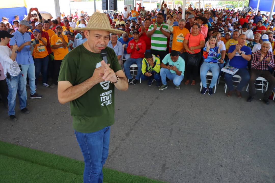 El gobernador de Portuguesa Primitivo Cedeño desde el municipio Guanarito en compañía de Gral. Raúl Alfonzo Paredes, Ministro del Poder Popular de Obras Públicas, el Diputado Leonardo Montezuma, Jefe Nacional del Puesto de Comando Presidencial del 1×10 del Buen Gobierno realizó el lanzamiento del Plan Integral de Vialidad Rural Portuguesa 2024 para la atención de los ejes La Hoyada, La Capilla, Hoja Blanca, Divina Pastora y Caño Indio, para la recuperación integral de la vialidad rural en este importante municipio productivo.
