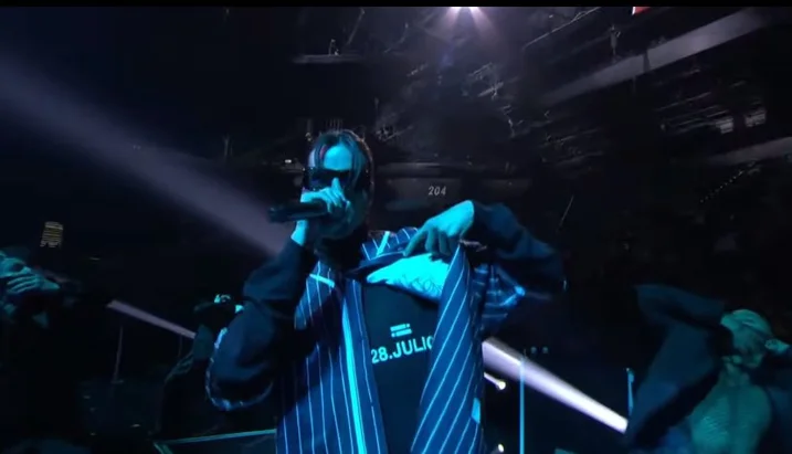 El venezolano intérprete de «Me Rehuso» durante su presentación mostró durante unos segundos que debajo de su camisa tenía estampada la frase «28 de julio», una fecha importante debido a las elecciones presidenciales del país.