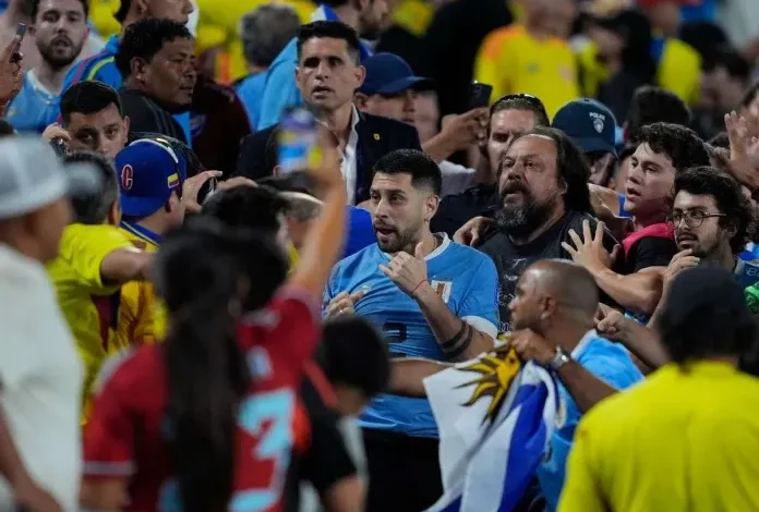 Darwin Núñez, Ronald Araújo y José María Giménez, entre otros jugadores uruguayos, se treparon a la grada para pelear con aficionados colombianos tras caer derrotados por 0-1 en la semifinal disputada este miércoles en el Bank of America Stadium de Charlotte (Carolina del Norte).
