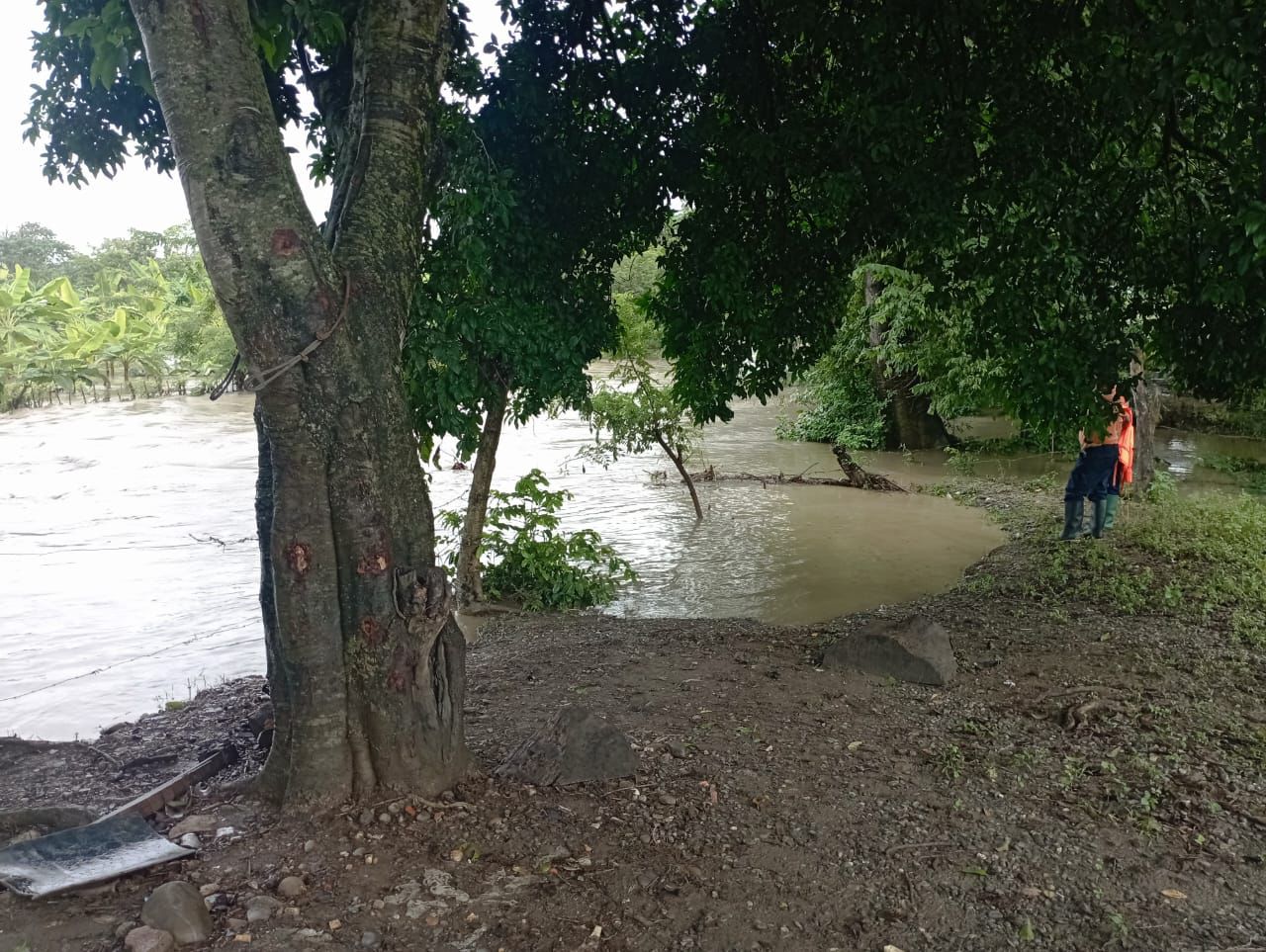 Mientras que a la altura del sector El Polvorín, se desbordó el río y afectó a una familia, cuya vivienda está a las orillas del río, no presentaron daños ni pérdidas materiales.