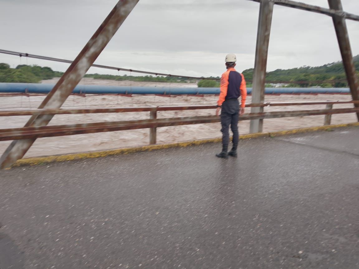 Con la finalidad de velar por la protección de la vida y la seguridad de las personas y las propiedades, funcionarios de Protección Civil y Bomberos, monitorean el aumento del caudal del río Guanare.