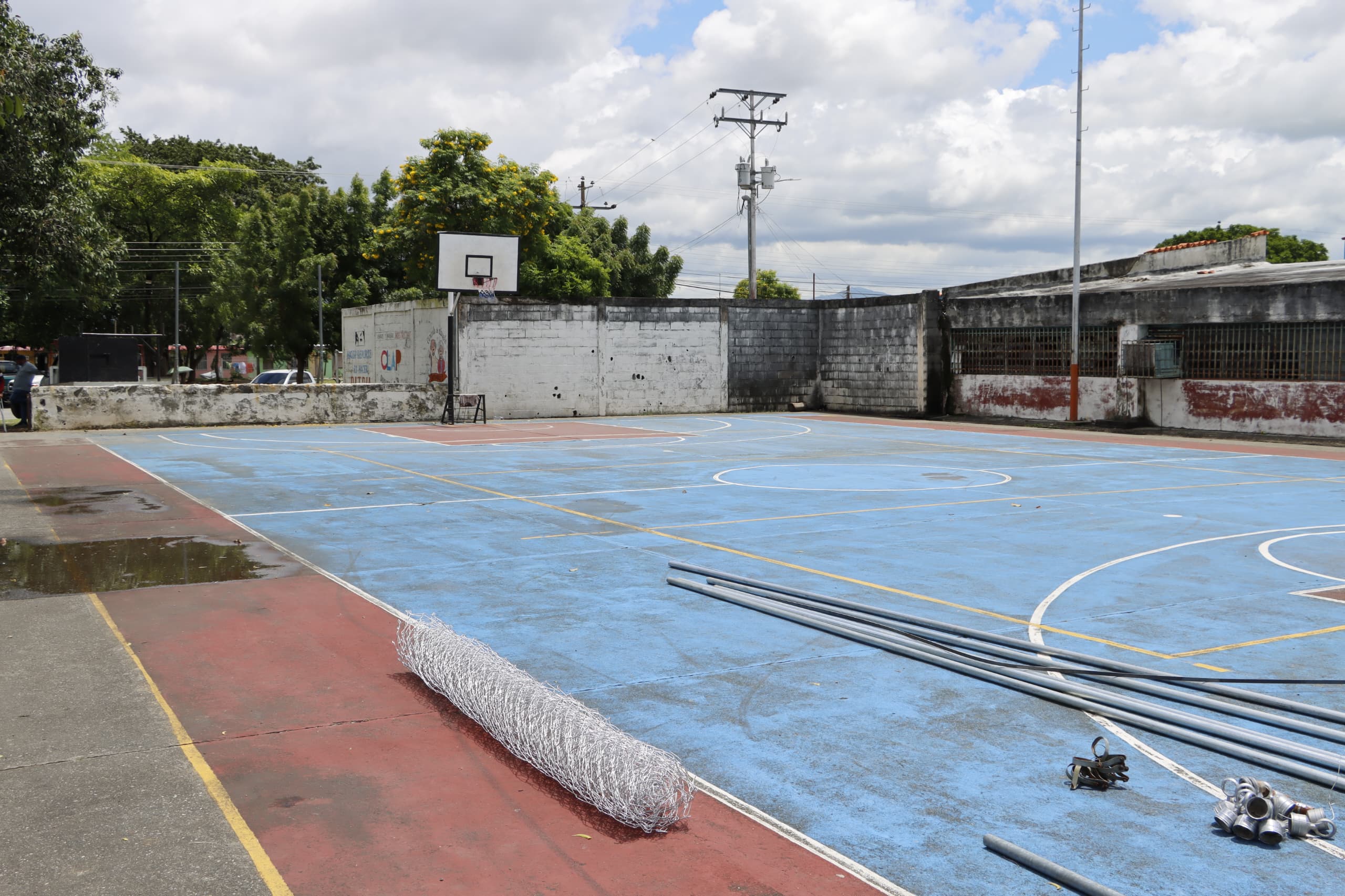 Las canchas múltiples de los sectores II, III y IV también se están atendiendo con la rehabilitación de las cercas perimetrales, acondicionamiento de la losa, pintura y demarcación reglamentaria, así como la rehabilitación de tableros.