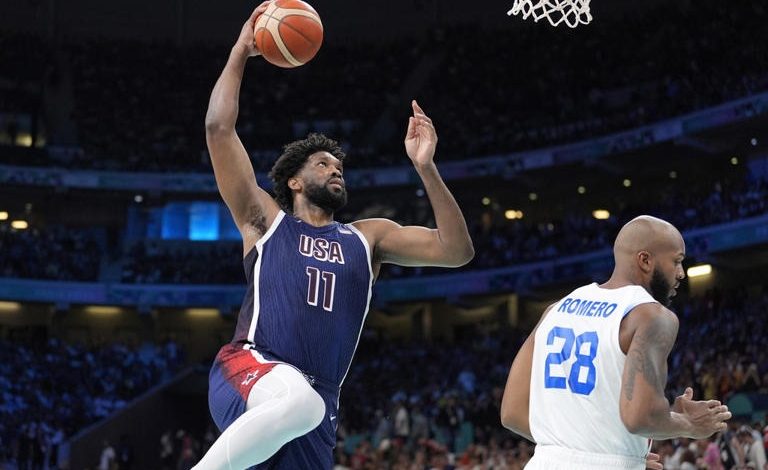 Joel Embiid aportó 15 puntos y Kevin Durant añadió 11 puntos, con lo que quedó a cinco unidades de igualar a Lisa Leslie como el máximo anotador de Estados Unidos en ambas ramas en los Juegos. Durant suma 483; y Leslie finalizó su carrera con 488.
