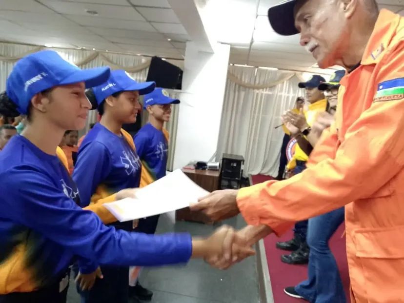 A 17 niños, niñas y adolescentes se le entregó su acreditación como Brigadistas de Protección Civil y Administración de Desastres del municipio Páez, en un acto realizado en el salón de sesiones del Concejo Municipal, donde fue designada como madrina de esta II Promoción, la primera combatiente Marilys Pérez de Torrealba.