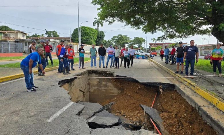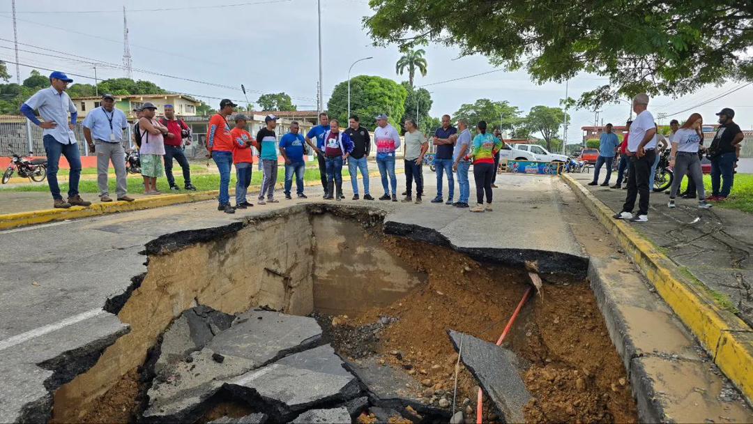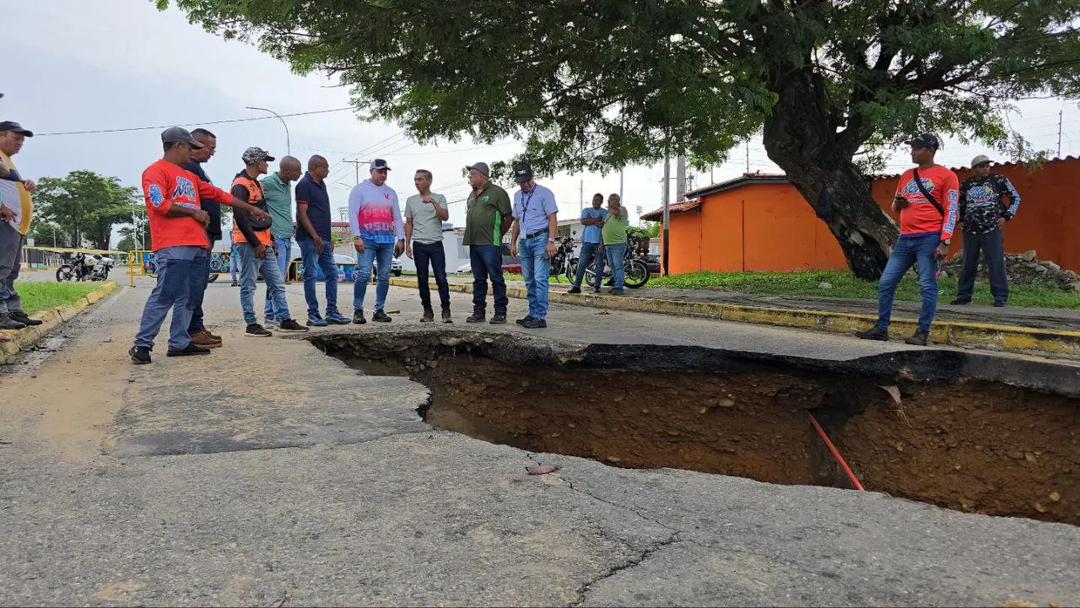 Tras el hundimiento del pavimento en la avenida Portugal a la altura de la estación de bomberos de Portuguesa, en Guanare, el alcalde Óscar Novoa en compañía del secretario General de Gobierno, Cirilo Salas, efectuaron inspección para iniciar trabajos de reconstrucción.