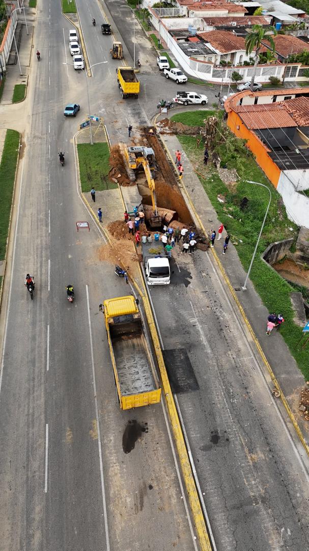 En tiempo récord la Alcaldía de Guanare junto a la Gobernación de Portuguesa, están dando respuesta a la situación presentada en la avenida Portugal de la ciudad a capital, donde un tramo de la vía socavó producto de las lluvias.