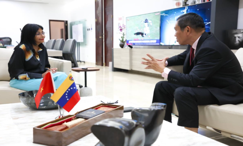 La Vicepresidenta Ejecutiva, Delcy Rodríguez, se reunió con el embajador designado de la República Socialista de Vietnam en Venezuela, Vu Trung My, donde reafirmaron la disposición de aumentar el intercambio comercial con los mecanismos de cooperación y diálogo establecidos entre ambas naciones.