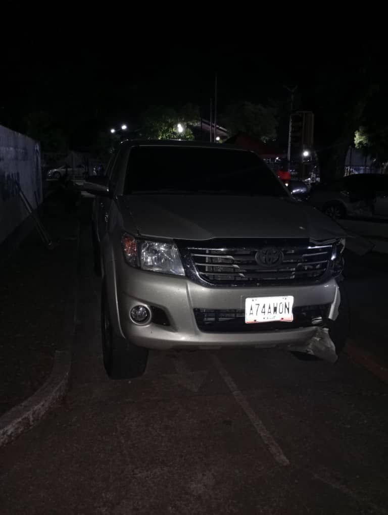 El vehículo, una Toyota, modelo Hylux de color dorado, cuyo conductor identificado como Jesús Hernández de 42 años de edad, resultó ileso y fue detenidos por funcionarios de la Policía Nacional Bolivariana.
