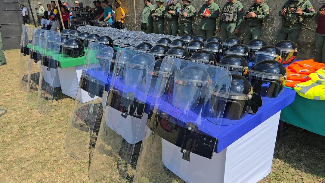 “Venimos a Portuguesa hoy a entregar una extraordinaria dotación, son nada más y nada menos que 55 patrullas equipadas, listas para contribuir a la construcción de la paz, porque la paz hay que construirla; se están entregando 2 vehículos de personal para todo evento y 150 unidades de motos, más equipamiento que se entrega a la policía”, expresó Cabello.