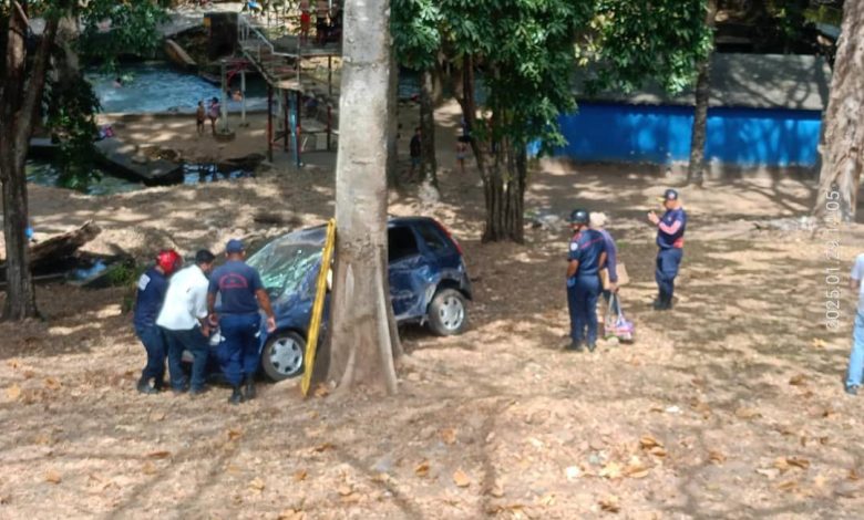 Una mujer iba conduciendo un auto por la avenida Bicentenario de Araure cuando pierdo control del mismo, chocando contra un poste y termina cayendo en las instalaciones del balneario Quebrada de Araure.