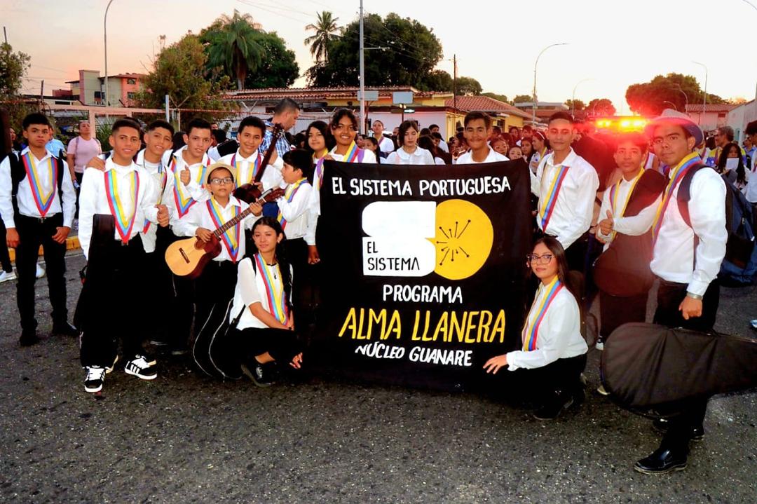 Con una concentración desde el Centro Cultural Tom0ás Montilla en Guanare y un desfile hacia la plaza Miranda, se realizó el macro concierto por los 50 años del Sistema Nacional de Orquestas y Coros Juveniles e Infantiles de Venezuela.