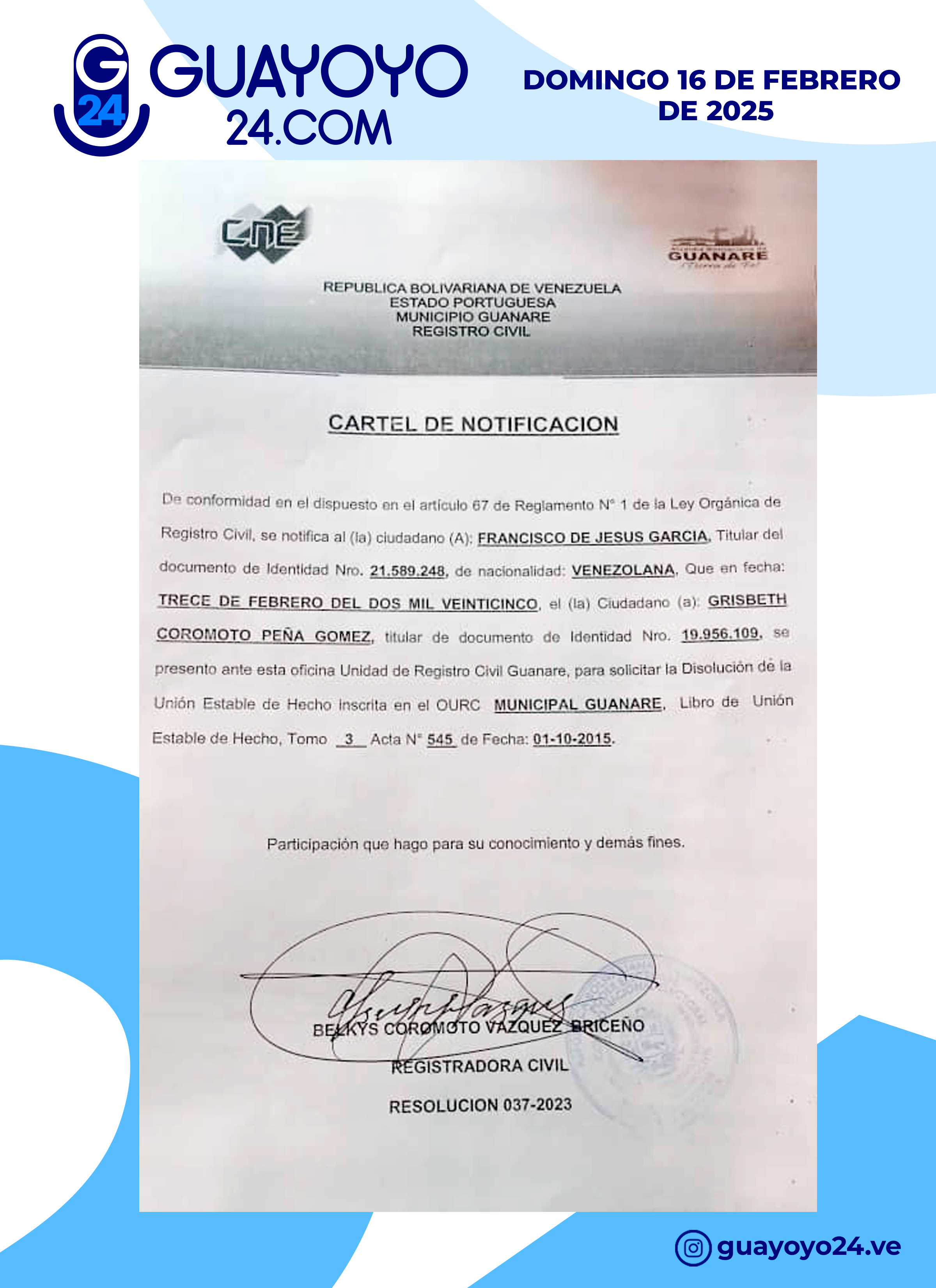 CARTEL DE NOTIFICACIÓN FRANCISCO DE JESÚS GARCÍA