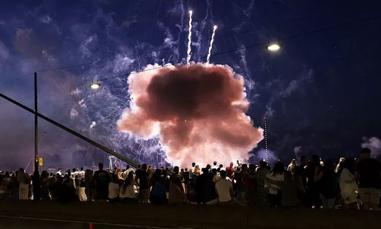 Según los Bomberos, los fuegos artificiales explotaron casi a nivel del suelo a lo largo de las orillas del río Rin durante el evento Rheinkirmes.