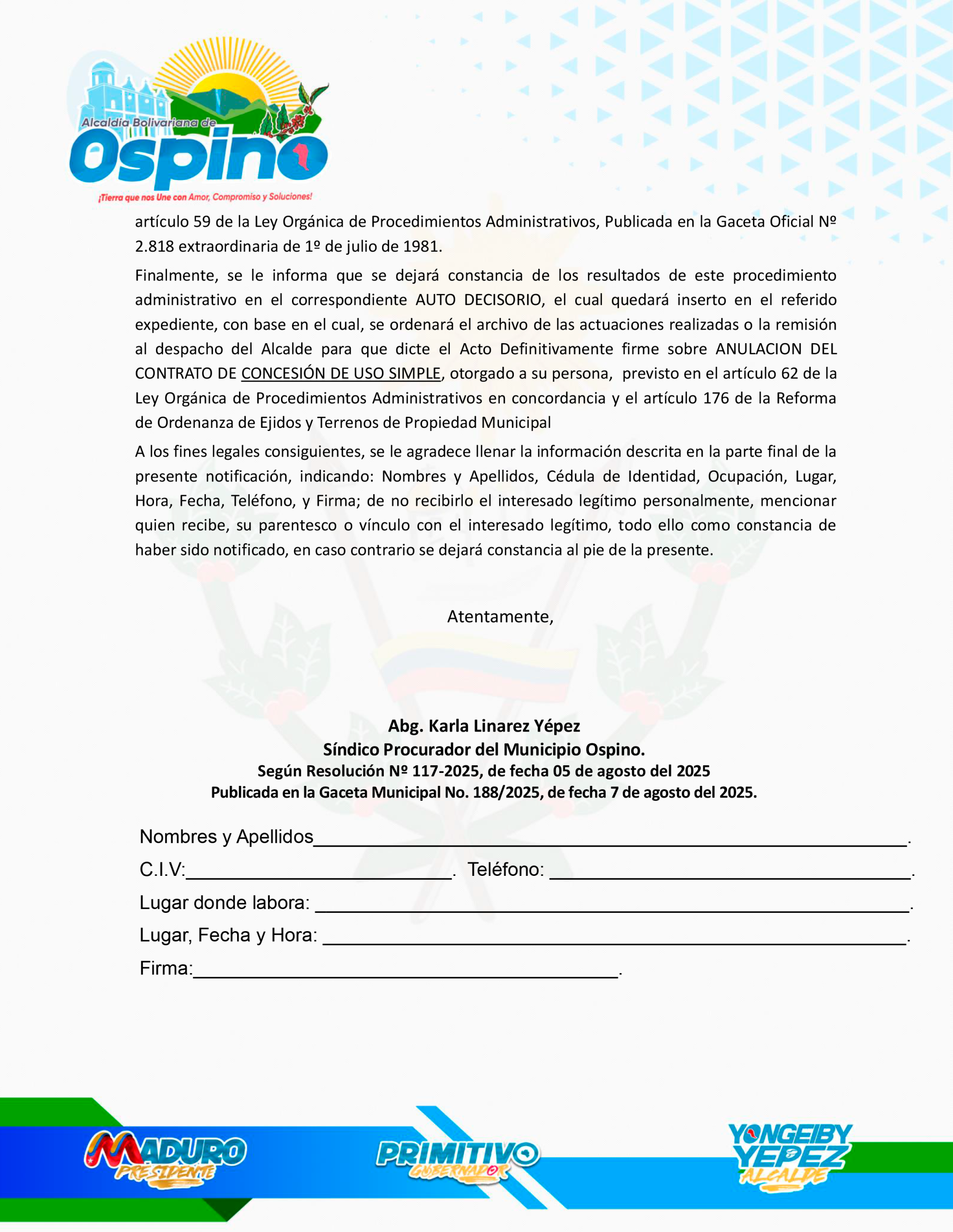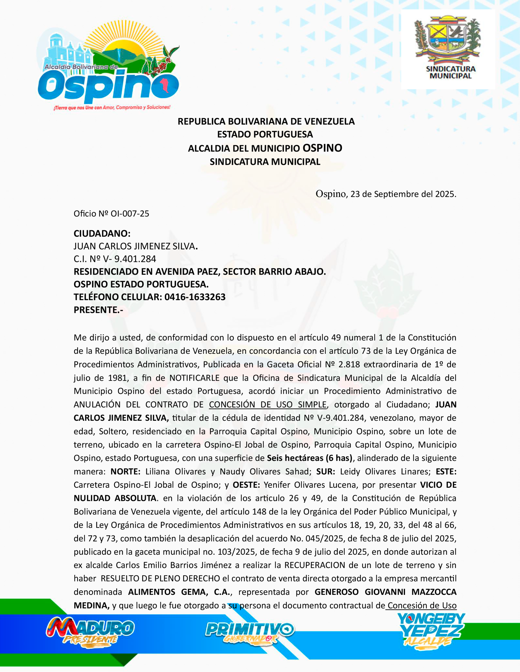 Inicio/PUBLICACIONES/NOTIFICACIÓN SINDICATURA MUNICIPAL ALCALDÍA DE OSPINO PUBLICACIONES NOTIFICACIÓN SINDICATURA MUNICIPAL ALCALDÍA DE OSPINO guayoyo Send an email 3 de octubre de 2025 Menos de un minuto Facebook Twitter WhatsApp Telegram Compartir por correo electrónico Imprimir guayoyo Send an email 3 de octubre de 2025 Menos de un minuto Facebook Twitter WhatsApp Telegram Compartir por correo electrónico Imprimir Compartir Facebook Twitter WhatsApp Telegram Compartir por correo electrónico Imprimir