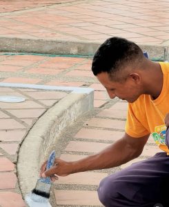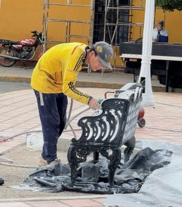 Bajo la supervisión y organización del alcalde, se está realizando mejoras a la plaza, en cuanto a las aceras y brocales, pintura, bancos e iluminación.