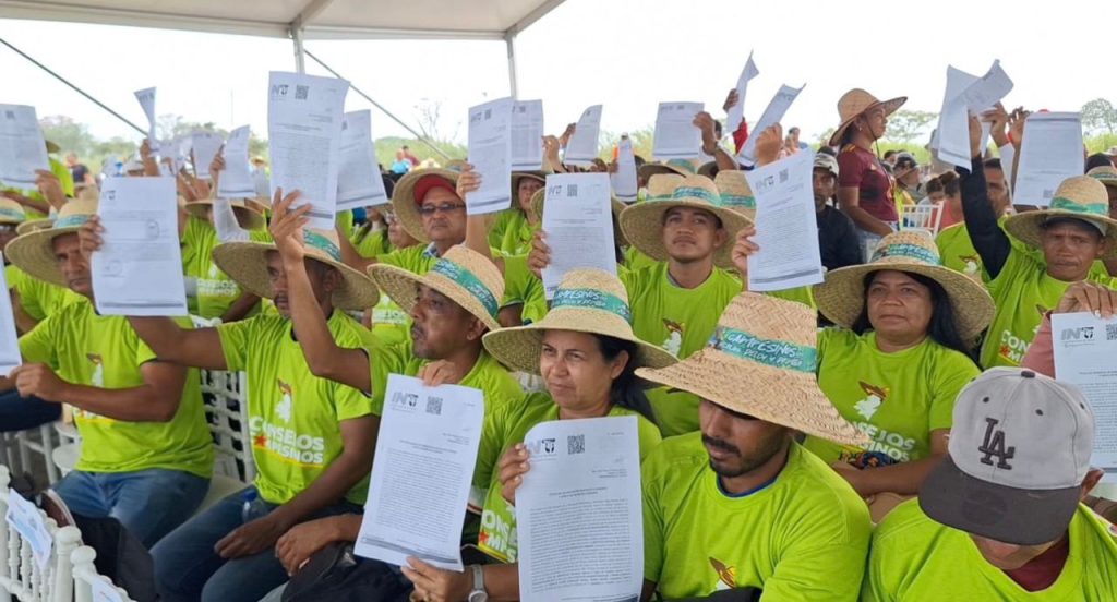 Cedeño destacó que en trabajo articulado entre el Inti, el ministerio, Gobernación y consejos campesinos se hizo la entrega de títulos de tierra a familias que han trabajado la tierra, garantizando así la seguridad y protección alimentaria del estado.